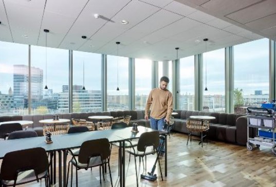 - Förfiltret för grovt damm och det antiallergena HEPA 14-filtret tar bort 99,99 % av luftburna partiklar, vilket ger en hälsosammare och säkrare arbetsmiljö